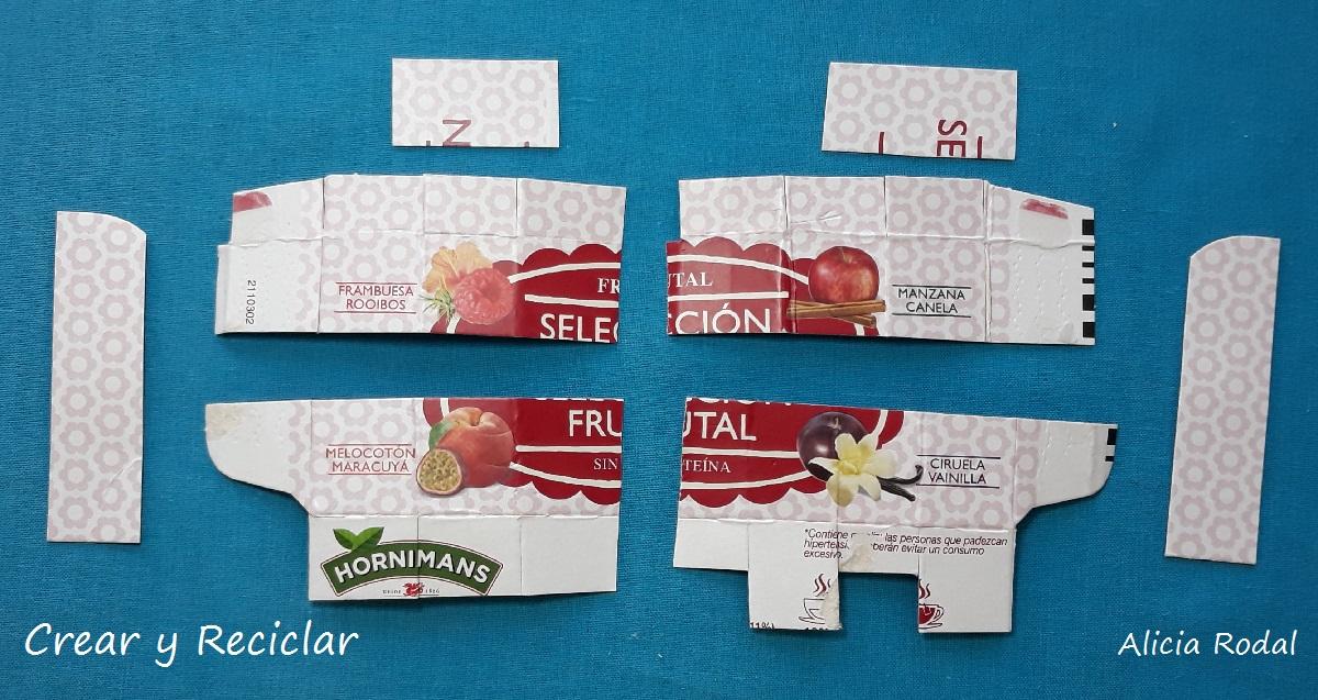 Para hacer estas simpáticas cajitas de té, vamos a reutilizar: