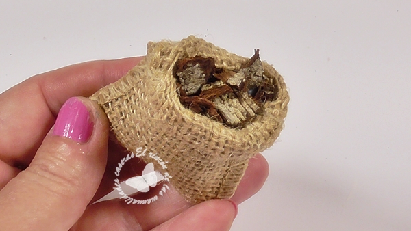 En el jardín podemos decorar con piedritas de río o con corteza de árbol, yo prefiero hacerlo con cortezas, así que necesitamos donde guardarlas, en este invernadero lo hacemos en un saco de tela, todo ecológico nada de plásticos jajaja.