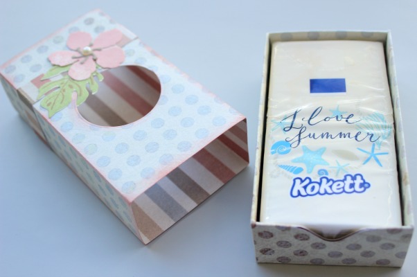 Lo interesante de estas cajitas es que les hice la abertura superior justo en donde estaba el título de los pañuelos (I love sommer), me encantó el resultado! . Hice varias y las dí justo antes de irme a la cama! comenzando el verano, para que mis amigas tuvieran sus pañuelitos a la mano en su auto, por eso no decoré demasiado las cajitas, lo importante es que sean prácticas.