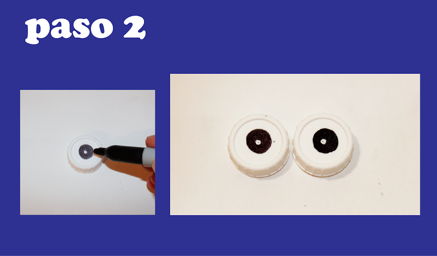 Con el plumón negro, pinta los ojos del Minion, dejando el centro blanco.