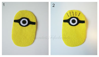 Recortamos en Fieltro amarillo dos cuerpos absurdos y ovalados,jajaja,y apartamos uno de ellos.