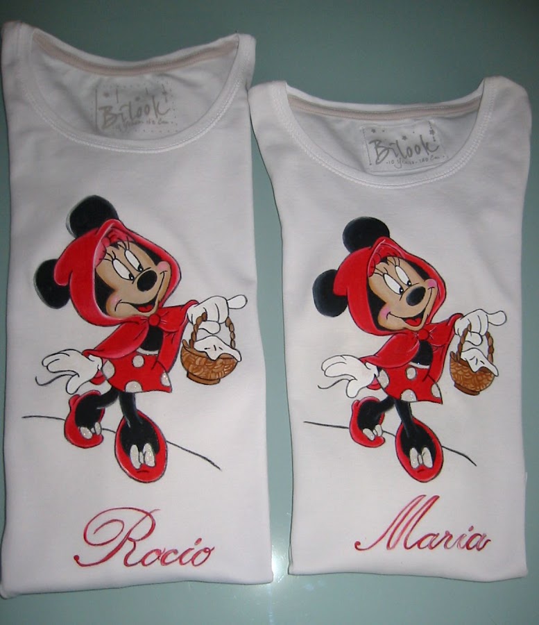 Esta es la del año pasado y que ya se le ha quedado pequeña, la otra mañana cuando se la ví puesta pensé tengo que hacerle otra para su cumpleaños. Me encontré de casualidad con el dibujo de Minnie vestida de caperucita que me vino muy bien. Las he tenido que hacer en un tiempo record (como siempre) por los lios que llevo pero bueno ahi las tienen.