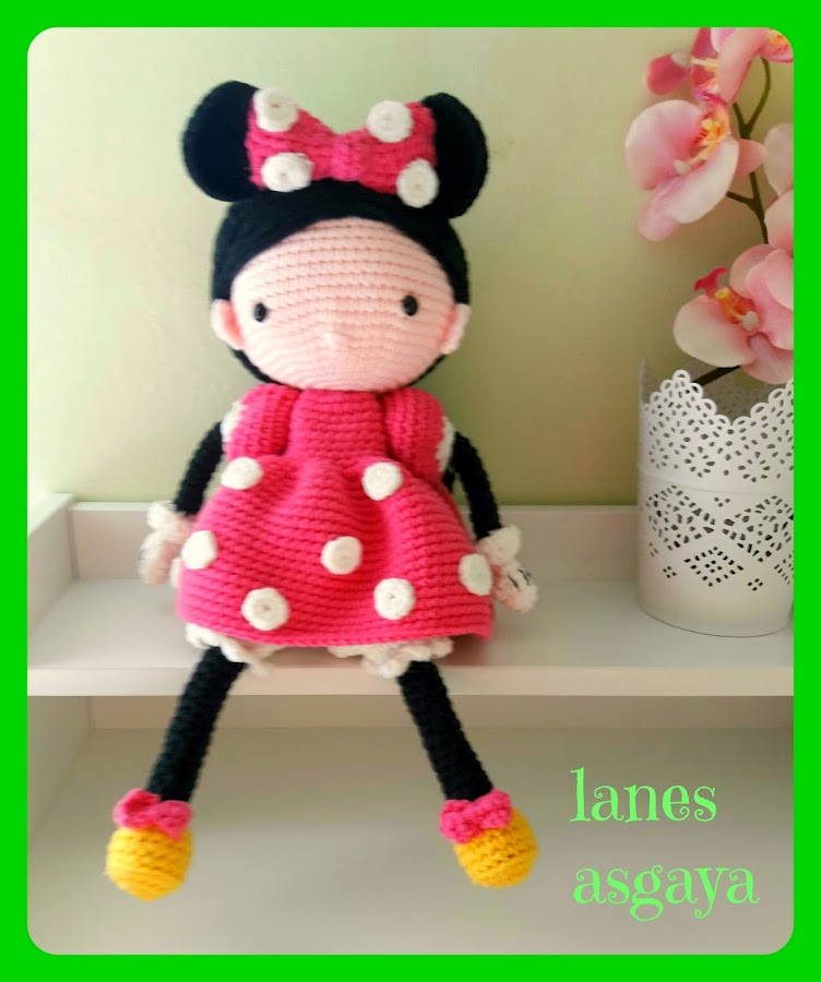 La tejí con "Eco" de Lanas Stop, es un algodón un poco más gordo del que usamos normalmente para amigurumis, por eso me quedó un poco más grande de lo normal, pero es que me encantan los colores que tiene, y para el vestido, aunque el original era en rojo, me apeteció ese fucsia que tenía en casa.