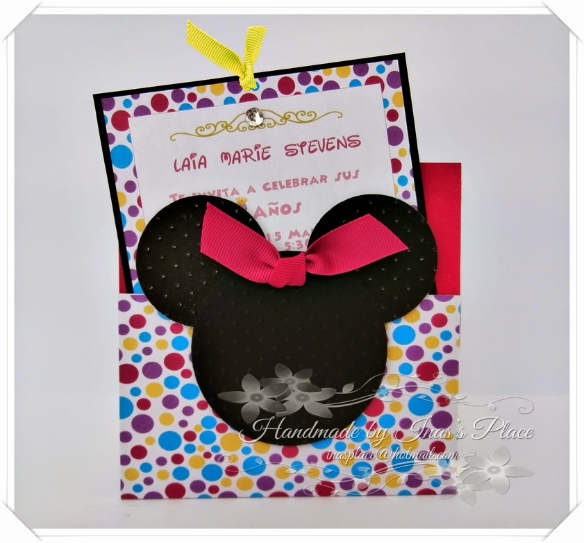 Con mucho colorido realicé esta invitación para salir de lo típico,el rosa y negro.Tipo bolsillo.
