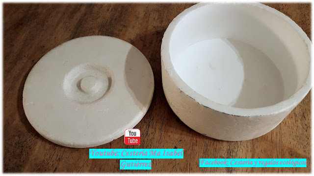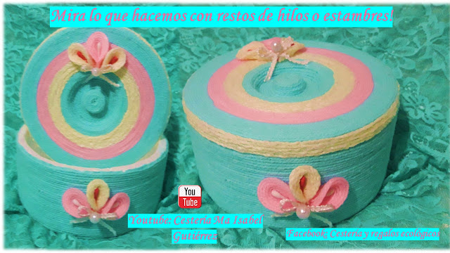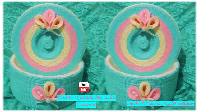 Ya pintado el recipiente y la tapa, empezamos a forrar con el estambre, lo hacemos con silicón frío, pero si tu recipiente es de aluminio, cartón, vidrio, etc, podemos hacerlo con silicón caliente...