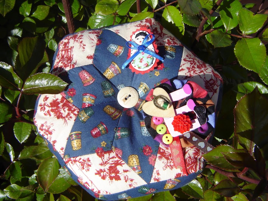 Pero no bastante con este me ha enviado estos otros en este precioso acerico,al que ya lo tengo en un sitio para poder verlo de cerquita y acordarme de ella.