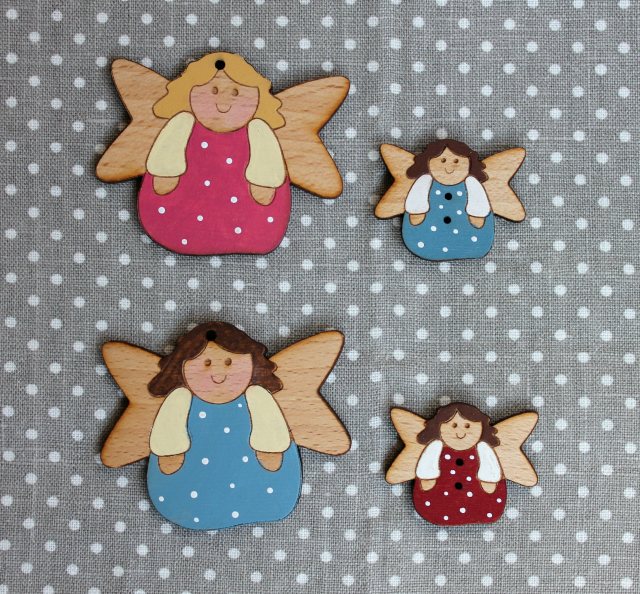 Estos angelitos de madera pintada (me quedé con las ganas de comprarlos el año pasado, porque se agotaron en seguida) que terminaran en un bastidor decorativo como este o en un neceser.
