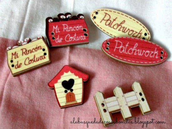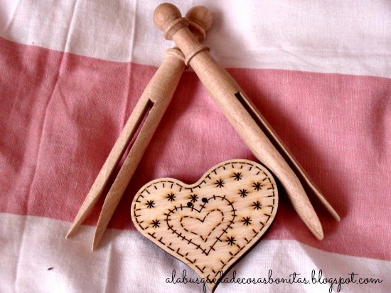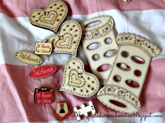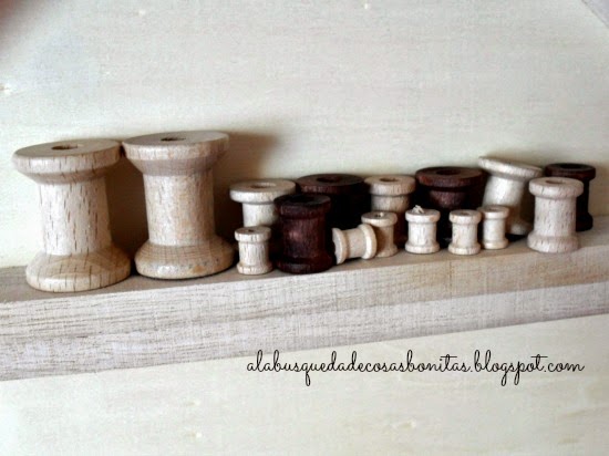 En una tienda de botones y maderas encontré estos corazones y estos porta-hilos de bordar...