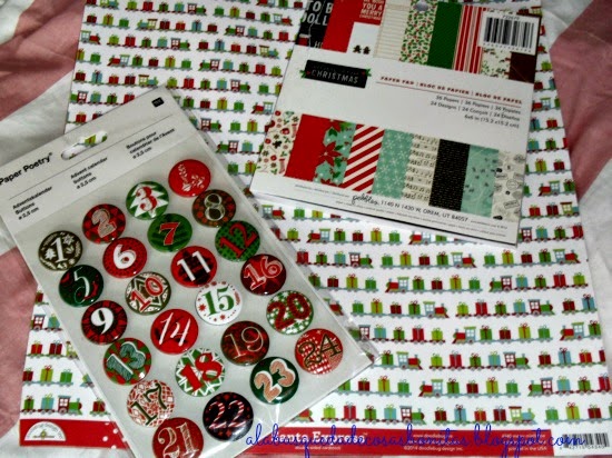 Estas fueron las primeras compras: un librito con láminas de papel para scrap, una lámina para el mismo uso, y unas chapas para hacer un calendario de Adviento que ya tengo en mente....