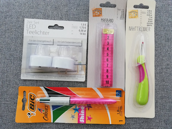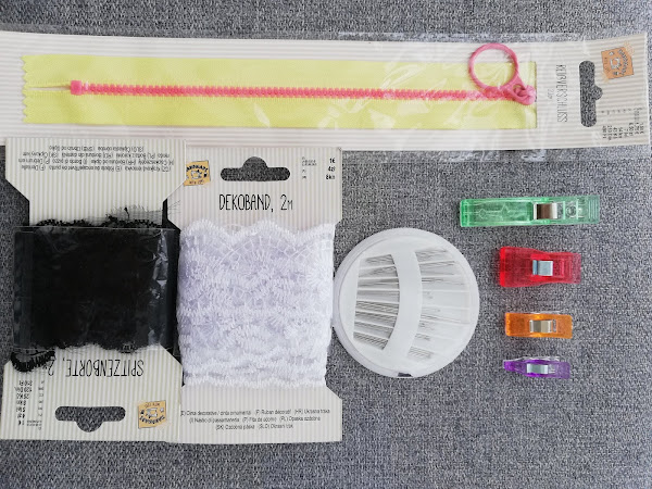 4 paquetes de clips de plástico para costura en diferentes colores. Cada uno de un tamaño compuesto por 10 clips, con un precio de 1 € cada uno. Tengo que reconocer que de algunos compré 2 paquetes y no me arrepiento nada de nada.