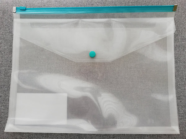 Cartera portadocumentos tamaño A4 con cremallera de color verde en la parte superior y un bolsillo con snap también en color verde en el lateral, con un precio de 1,50 €.