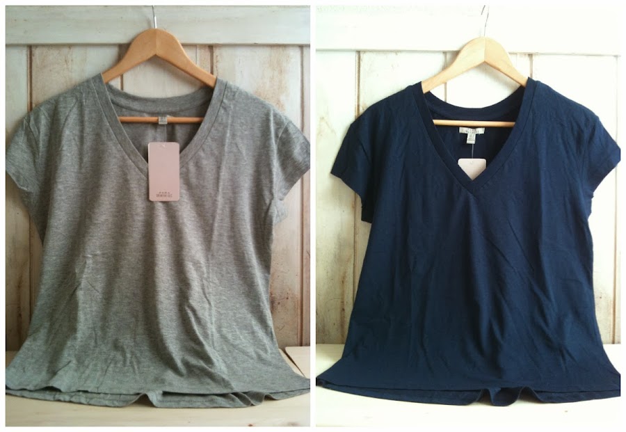 Por último, unas camisetas de algodón básicas, que suelo usar mucho, tanto debajo de americanas como con shorts. El precio: 5.95?, son amplias y el escote a pesar de ser en pico es discreto.