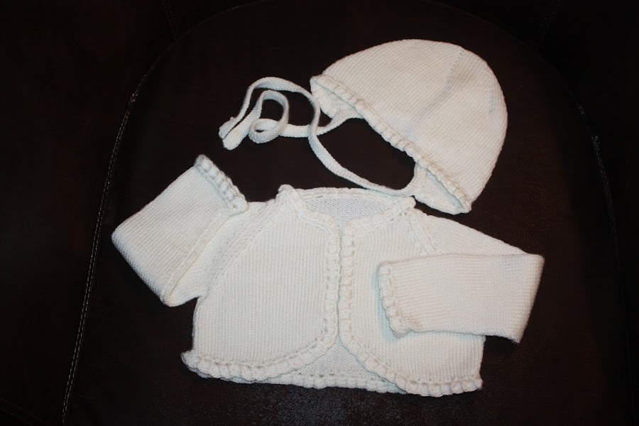 Esta es una de las primeras chaquetitas que hice. Se nota que no es ninguna maravilla. Además, entre tanto hacer y deshacer perdí parte de la lana (a saber donde, nunca mas apareció...) y no me llego para rematarla, por eso le añadí esas volantitas en otro color. No quedó nada bonita, pero sirvió para aprender, que es de lo que se trataba.
