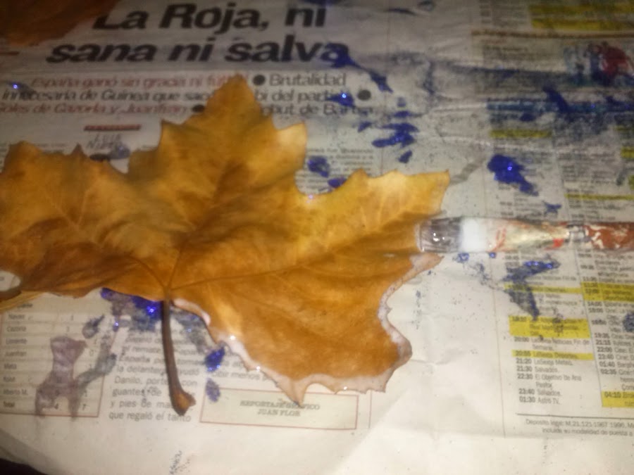 Elegí las hojas más bonitas, y fui expandiendo cola por todo el filo.