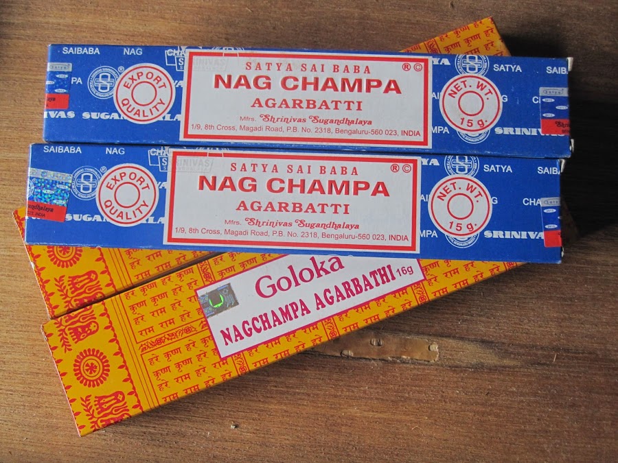 Me encanta que mi habitación huela bien, y tengo un montón de inciensos, esencias y velas aromáticas entre las que elegir. Me gustan muchos aromas diferentes. Pero en cuanto a incienso en barrita, mi favorito de siempre sin lugar a dudas es el de Nag Champa (a la venta en las tiendas de India que están al lado de la plaza mayor). Es el incienso auténtico que utilizan en la India, es barato y no huele nada artificial como otros occidentales. Quizá el aroma sea un poco intenso para algunos gustos, pero a mi personalmente me chifla. Los días lluviosos me gusta quemarlo sin parar, hace una combinación muy hogareña y nostálgica.