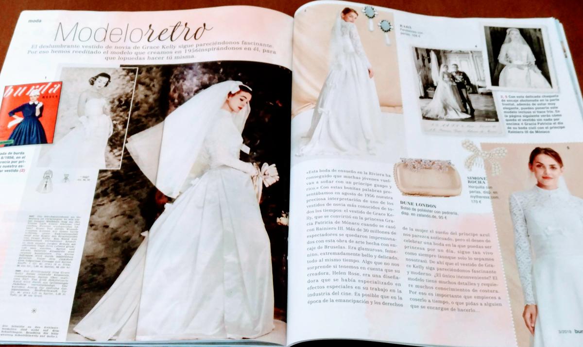 Y si estáis pensando en casaros esta temporada o tenéis que confeccionar un vestido de novia, os merece la pena daros una vuelta por el modelo retro del mes de marzo: un vestido de novia inspirado en el de Grace Kelly.