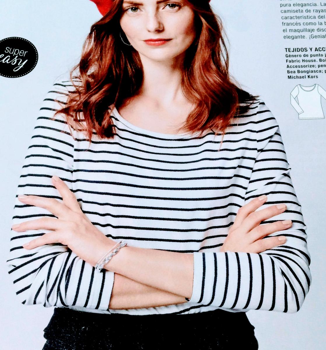 El siguiente modelo que os voy a enseñar es una camiseta super fácil de hacer en tela de punto bielástico y que queda estupenda, como podéis ver en la reseña que publicó Moda en la Costura hace unas semanas .