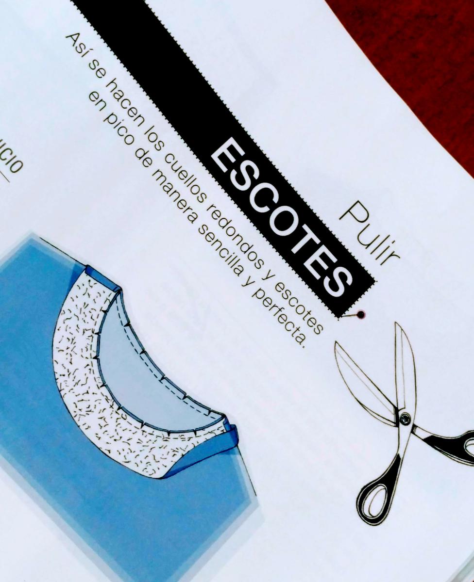 En este mismo número de marzo incluyen un tuto sobre el pulido de escotes, técnicas básicas que hay que dominar en la confección de blusas, vestidos, camisetas, chaquetas y demás.