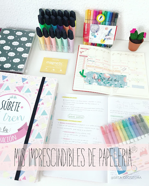 Me gustaría hablaros de mis imprescindibles en el mundo opositoril, lo que yo necesito sí o sí en mi escritorio y que le doy bastante utilidad. De las libretas sin usar que guardo en cajas y los millones de post-its que tengo...ya hablaremos otro día.