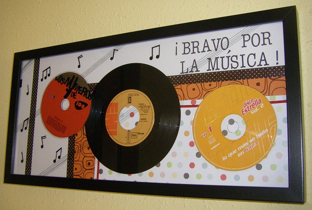 Mi primer proyecto fue este cuadro para "El rincón de la música", así titulé aquella entrada allá por enero del 2013. Como podéis ver algo muy sencillo para lo que utilicé papel de scrapbooking, papel de regalo, washi y letras adhesivas. Las notas musicales están hechas a mano y las líneas de los pentágramas con hilo negro. Ayyyyyyysssss!!!!!! qué tiempos.