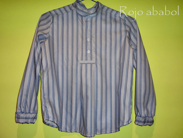 La camisa del canijo es más sencilla, saqué el patrón de aquí y encajó perfectamente en su talla. Es bastante delgadillo así que mantuve la botonera tradicional.