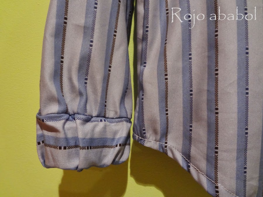 Las mangas están algo acortadas y en lugar de puño con botonera puse un puño con goma frunciendo la manga. El efecto es muy limpio y cómodo, además nos valdrá más tiempo.