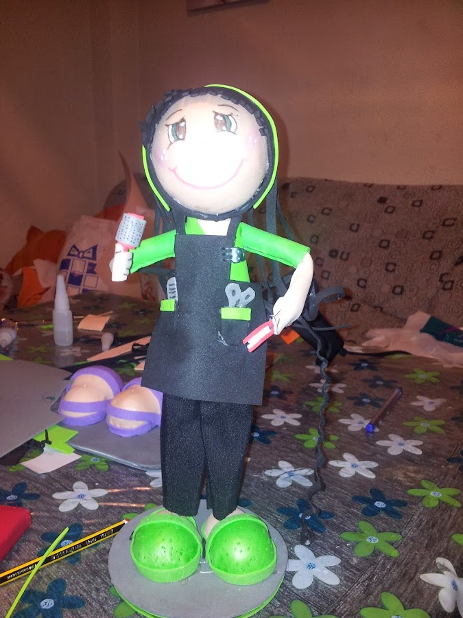 Los patrones los fui sacando a ojo, ya que la mayoría de la ropa, menos en el caso de la peluquera, está echa con tela y no en goma eva.