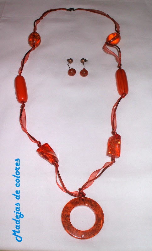 En este conjunto cambié las cadenas por cola de ratón y cinta de gasa en tonos marrones y cobre.