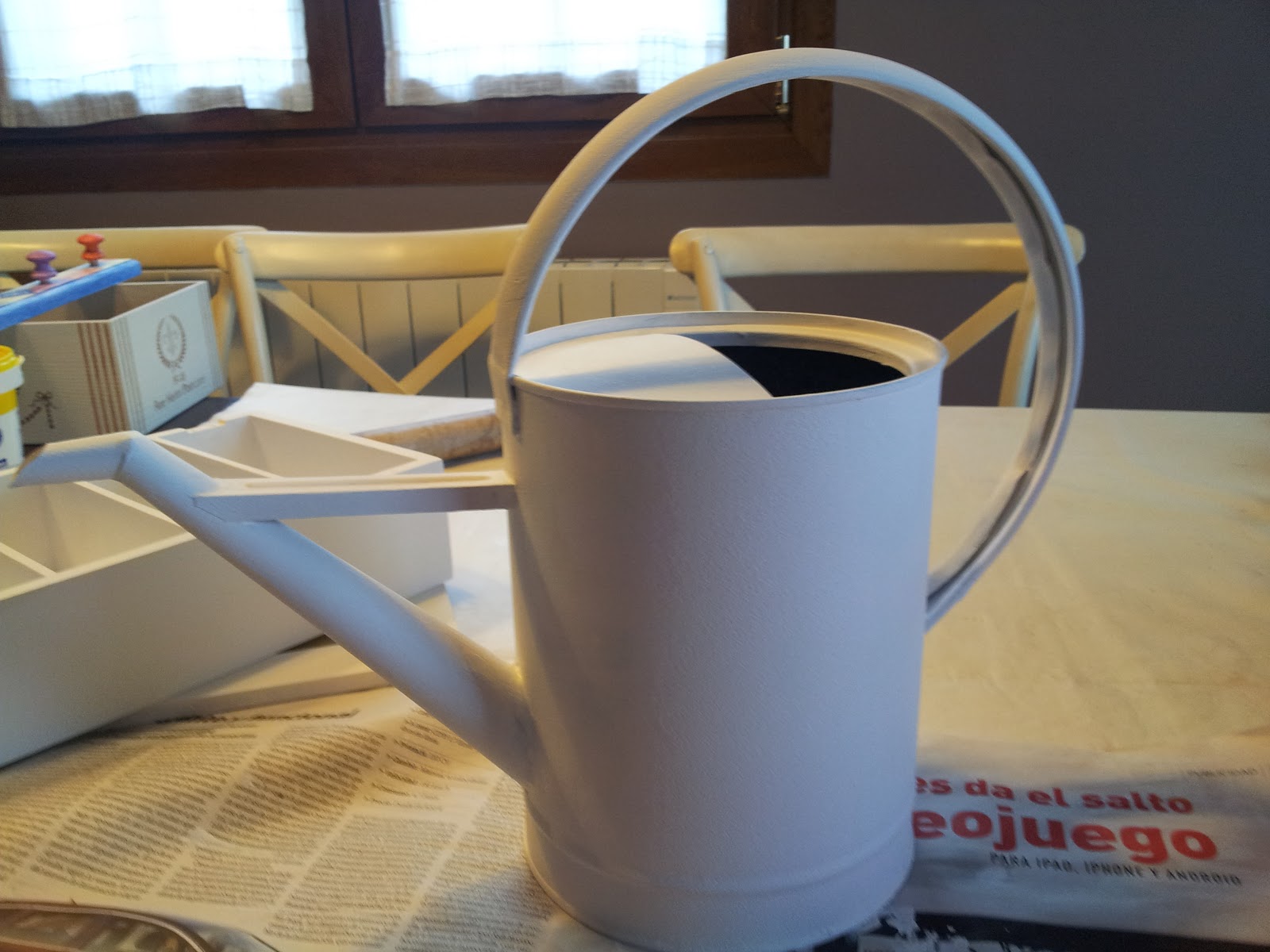 Y por último una regadera que vino de Barcelona con mucho cariño y le dado un aire campestre con la técnica del decoupage y decapado.