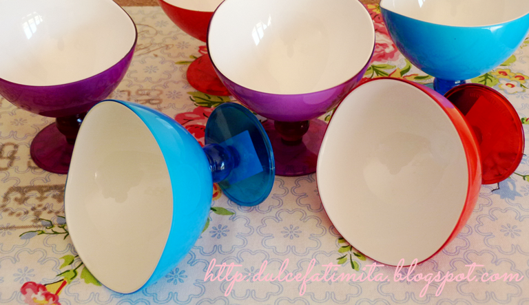 Y ya como colofón, éstas preciosísimas copas para postres, que me tienen enamorada, ¡y no es para menos! Ya estuvimos mi sobrina y yo pensando qué postre perfecto íbamos a preparar en éstas copas, jejejeje