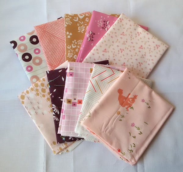 Luego coincidió que gané una tarjeta para Fat Quarter Shop y le dije que si quería comprar alguna tela que aprovechase. Hablando de lo que íbamos a comprar le comenté que iba a coger estas telas y me dijo que NO, no pregunté más y lo eliminé de la cesta de compra ;)