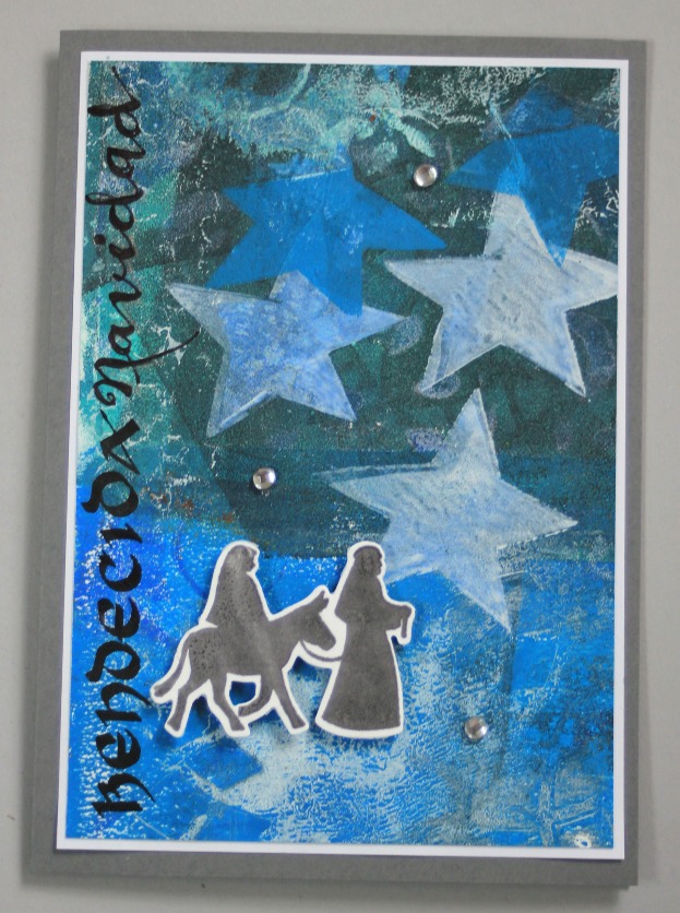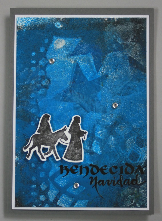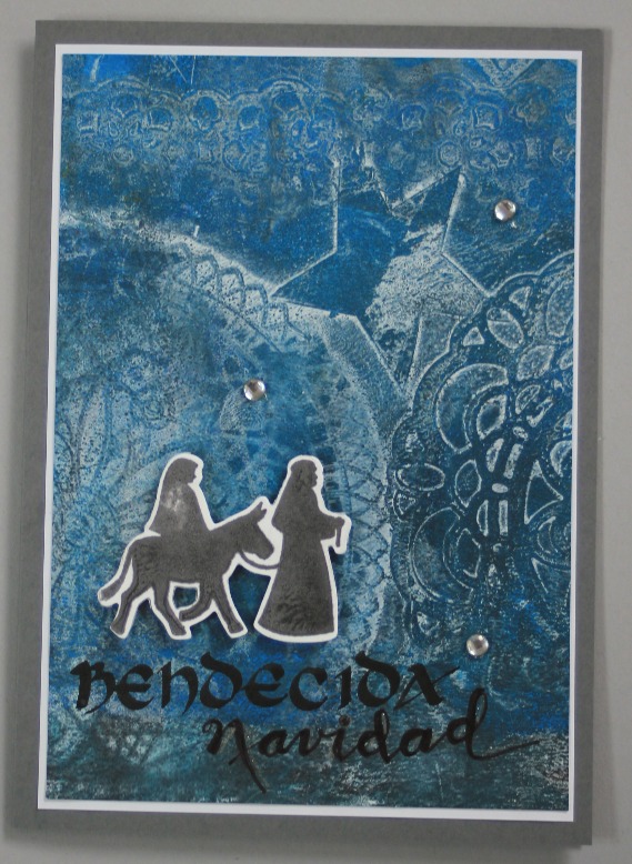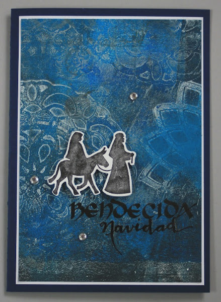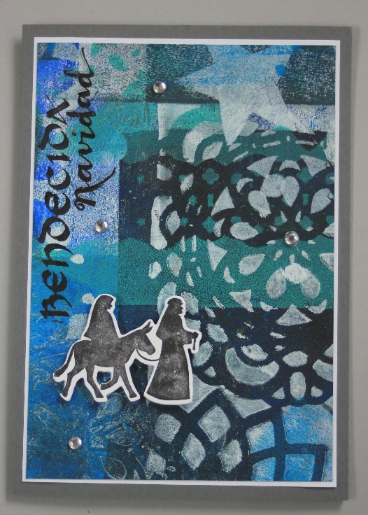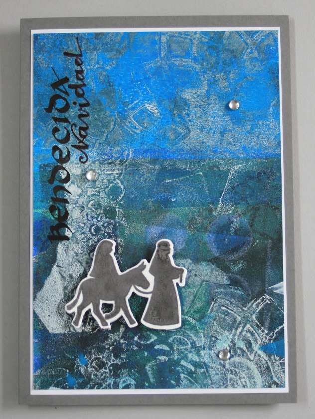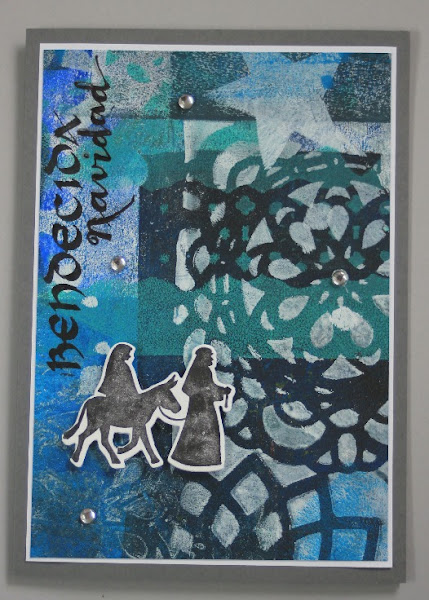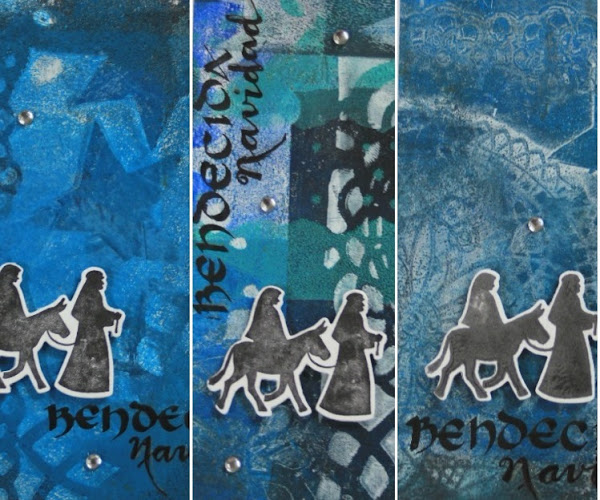 Bendecida, agradecida... por todas las cosas buenas que recibo durante el año, por eso es una época de reflexión, de dar gracias, de enviar un saludito... esta vez, hice los fondos con la placa Gelli, dejándome llevar, sin pensar mucho y escribí a mano el "bendecida navidad" por jugar con las palabras en lugar de "bendita" que a la larga es lo mismo pero que para mi tiene otra connotación.