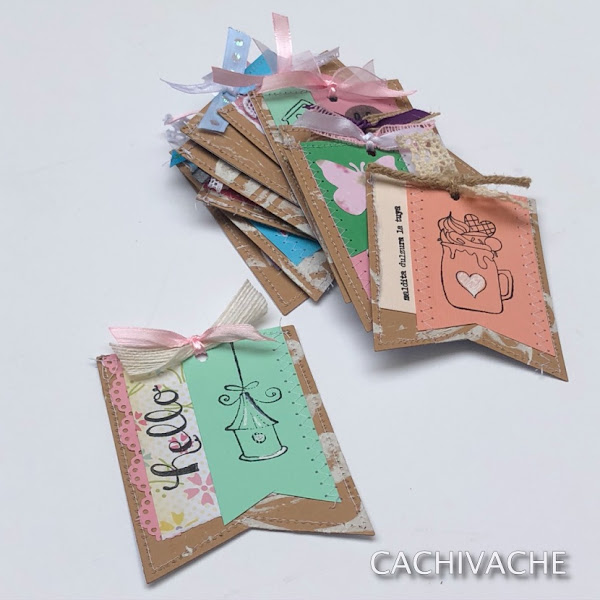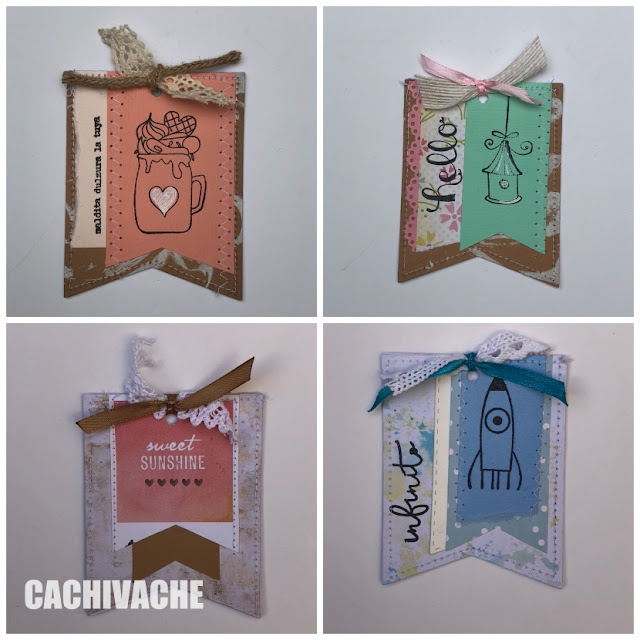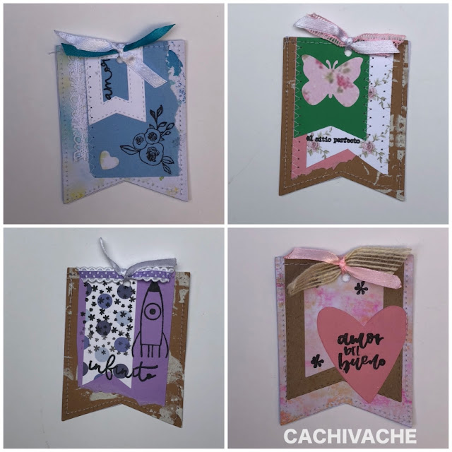 Ha sido todo un disfrute hacerlas, colocando papeles decorados, sellos, cintas sobre estencil de gesso.