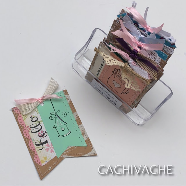 En la imagen veis la trasera de la tarjeta, como podéis ver, además de una simple tarjeta también sirve de marcapáginas y de tag a modo decorativo para algún álbum de recuerdos.