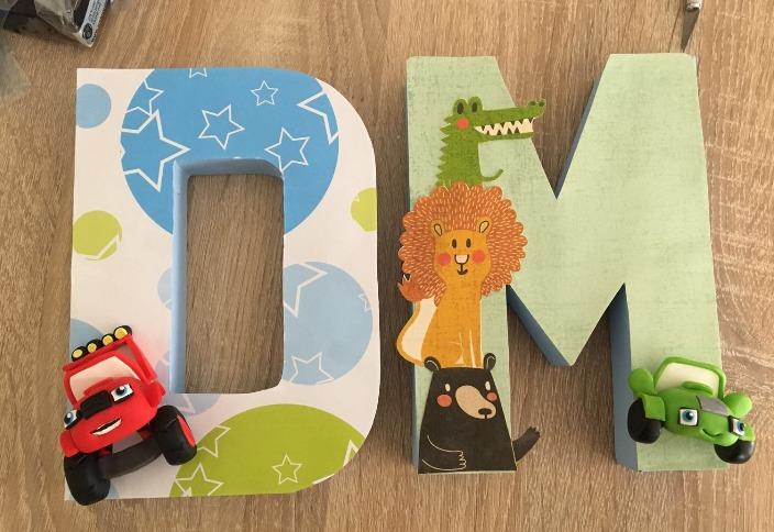 La idea es elegir una letra (que previamente he decorado) y una figura, como en los ejemplos de pedidos que me han hecho.
