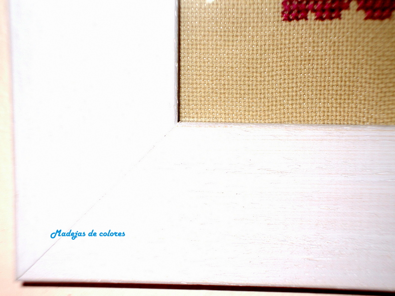 Hace varios meses les enseñaba unos cuadros con diseños de Tralalá que me había hecho a falta de enmarcarlos. Tenía muy clara la idea de como los quería, en blanco roto con algo decapado o que se viera la veta de la madera, y aunque me hubiera gustado que se viera más la veta, estoy contenta con el resultado.