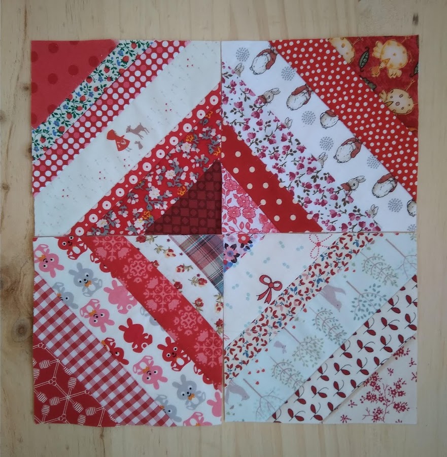 Estoy haciendo bloques para esta colcha cuando tengo ratitos libres.