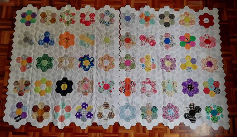 Flores de hexágonos que intercambié con chicas de un grupo de Facebook.