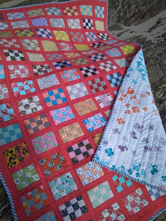 Al final esta colcha resultó más grande de lo pensado, pero eso me animó a coser con mis retales.