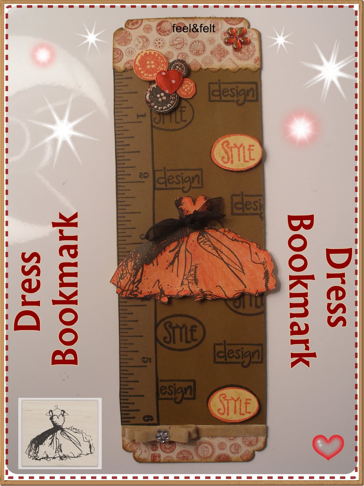 He realizado un marcaginas con el sello del vestido, que me trae loquita, y que por fin he empleado, y una libretita para dejar volar la imaginacion....