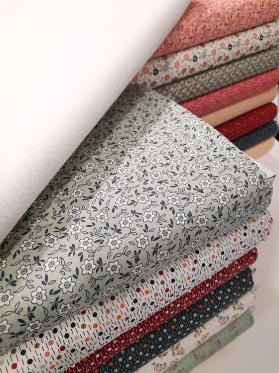 2. Opción 2: Kit con las 15 telas de la colección "NEW VINTAGE" de EQP, con las medidas que detalla el proyecto y 1,80 mts de tela base blanca tono sobre tono. Puedes comprar tus telas pinchando aquí.