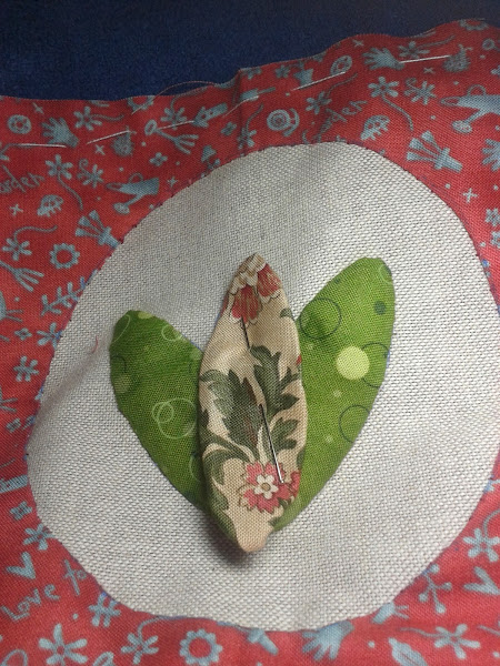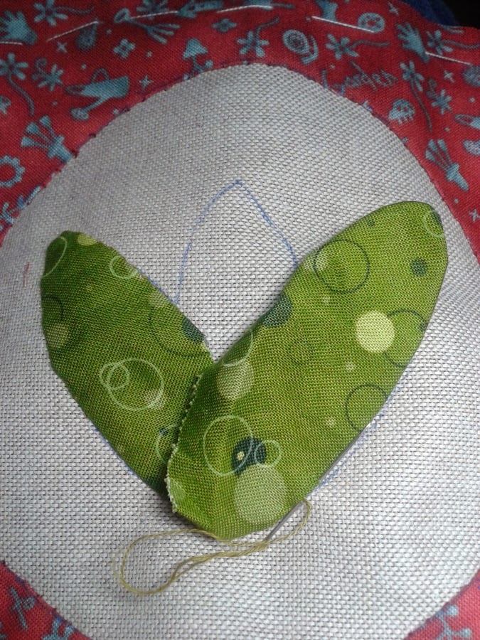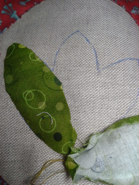Vamos cosiendo primero las hojas verdes a puntada escondida