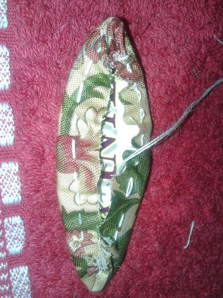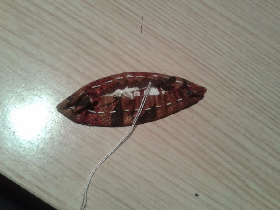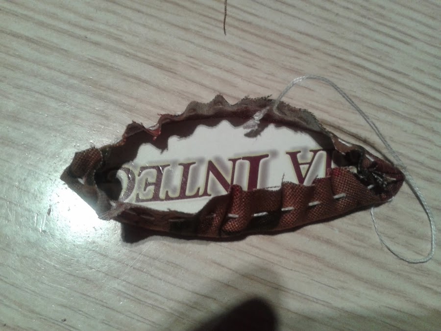 Metemos la plantilla de cartón y tiramos del hilo para q se adapte al cartón.