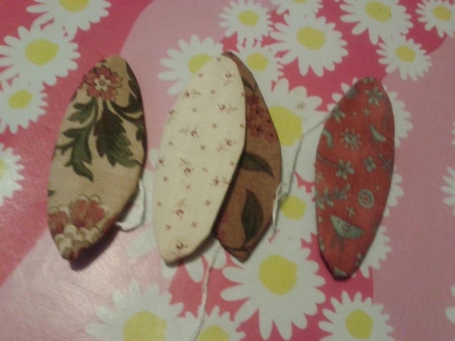 Ahora hacemos lo mismo con tela verde para hacer las hojas del tulipan, en total 8 hojas, 2 para cada cuadro