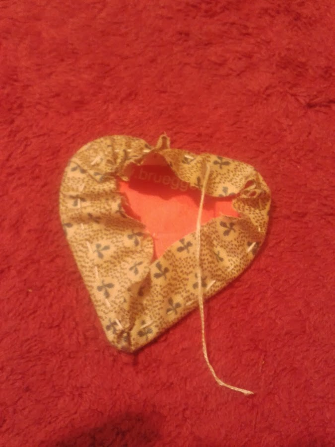 se pasa un hilvan alrededor del corazon y se tira del hilo