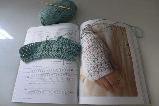 Son como los del libro, pero yo he decidido hacerlos cortos, no tan largos como los de la foto, para que cuando los utilice en invierno, no me molesten con las mangas.