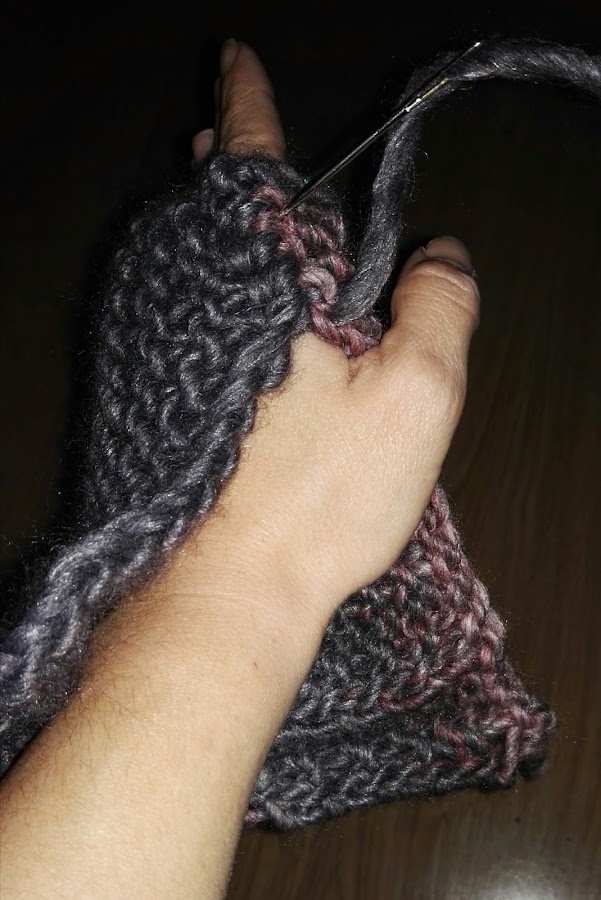 Y la cantidad de vueltas será lo ancho de la mano ( mi caso 25 vueltas).