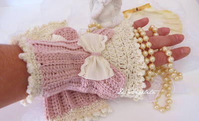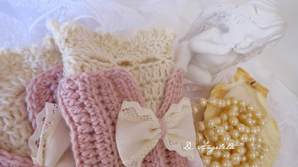 Cuando hice el primero y ví el resultado me imaginé las mil y una posibilidad que tenían... hilados, colores, terminación, puntilla de borde.... se desplegó un sin fín de imágenes en mi cabeza. No serán los últimos que haga. Son rápidos de realizar, cómodos y resultones . Quizá me pasé un poco con el super lazo que le puse.... pero siempre estoy a tiempo de quitárselo.