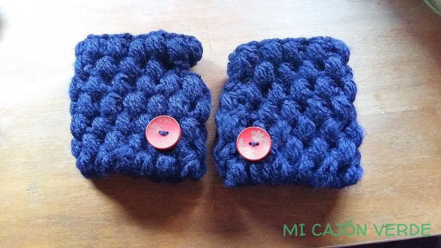 y ya tenemos nuestros preciosos mitones. Les añadí un botón de madera para decorar. Espero que os haya gustado.