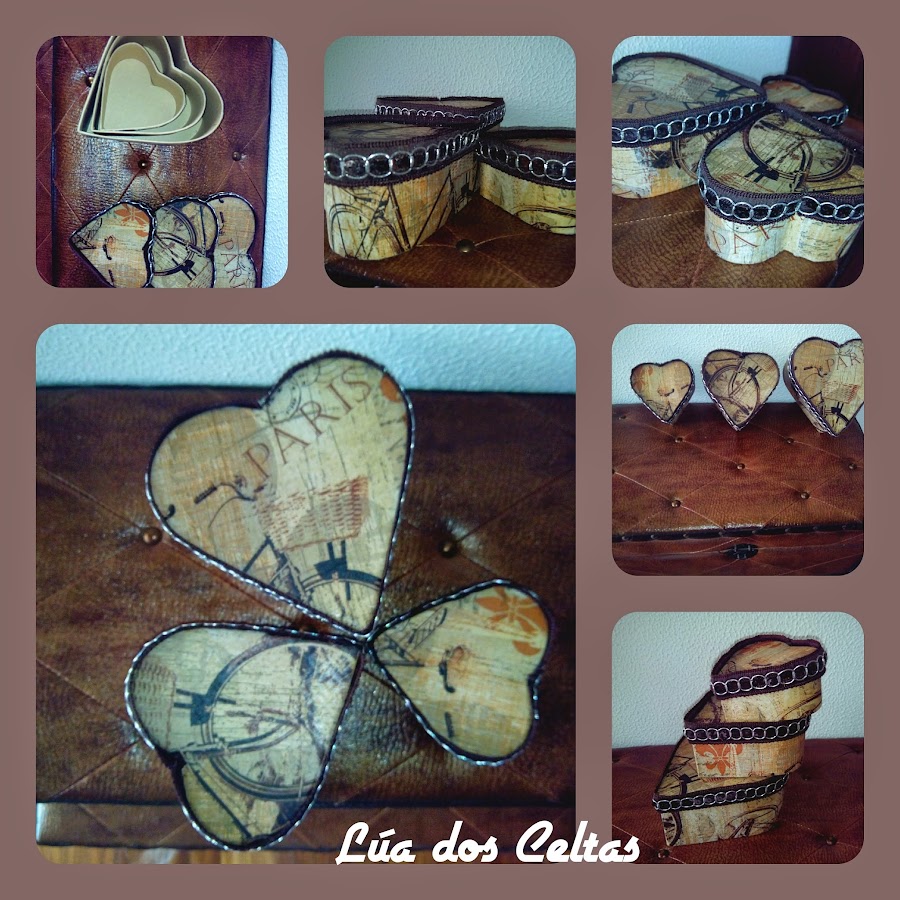 Las cajas son de cartón, que no me convence mucho como soporte para decoupage, pero la verdad es que el resultado está bastante bien.